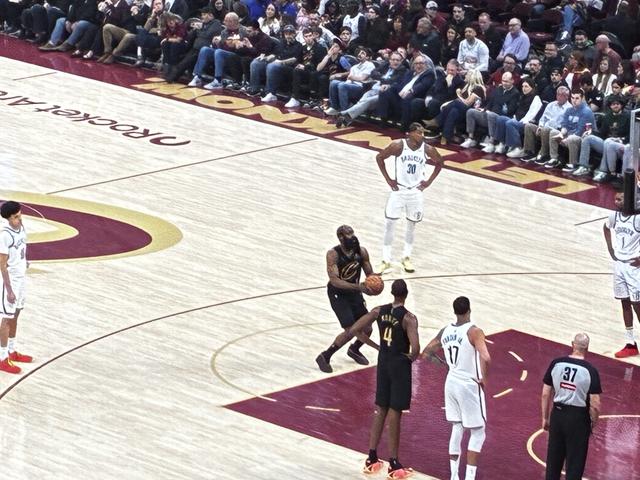 Just 41 seconds into the game and Cavs up 4-0 Nets coach Jordi Fernandez did not like the direction things were going and opted for a very early timeout. Just 2:10 into the game the Cavs led 9-3 when Jarrett Allen was fouled and hit one of two free throws. The Cavs then went up 12-3 with 9:17 remaining when Dean Wade drained his second three of the early going. Donovan Mitchell and James Harden then electrified the crowd when Harden threw up an ally oop pass and Mitchell finished it with a dunk putting the Cavs on top 14-3 with 8:46 left in the opening quarter. With 6:51 left the Cavs were up 18-10 when Harden hit Allen in the paint with a beautiful pass and the big man from Texas finished it off with a dunk. With 5:47 left the Cavs lead was 21-12 after Harden hit Jaylen Tyson and he drained a three from in front of the Cleveland bench. The assist by Harden was his 4 of the first quarter. With 3:12 left in the quarter Allen was already in double figures with 10 points and the Cavs led 29-14. With 1:01 left the Cavs’ lead grew to 18 points when Dennis Schroder hit Sam Merrill at the top of the key and he drained the three. As the first quarter ended the Cavs led 34-16. Allen led all scorers with 10 first quarter points. Noah Clowney and Michael Porter, Jr. led the Nets with six points apiece. The Cavs shot 62% (13 of 21) from the field in the first quarter while the Nets shot a pathetic 24% (6 of 25). The Cavs also outrebounded the Nets 15-7 in the opening quarter.