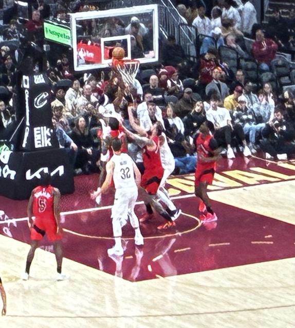 The Raptors took the lead, and it then increased to 37-30 with 9:33 remaining in the first half when Barnes was fouled by Tomlin after hitting the jumper. With 7:54 left in the second quarter the Raptors took a 43-34 lead when Gradey Dick hit from long range. With 4:09 left after the Cavs had cut the Toronto lead to 52-47 Porter blocked an RJ Barrett layup and the sellout crowd ignited. The Raptors responded by hitting their next two shots to take a 56-47 lead. The Cavs cut the lead to 58-52 with 2:03 left in the second quarter when Sam Merrill drained a three. Every time the Cavs looked like they were going to chip away at the Raptors lead they responded and with 1:25 left the Toronto lead was back at 10 when Jakob Poeltl scored in the paint. As the quarter ended the Cavs looked flat out disinterested and the raptors took 67-54 lead into the locker room. Barnes led all scorers in the first half with 16 points. Hunter led the Cavs with a pedestrian 12. The Raptors shot 66% (14 of 21) in the second quarter finishing the half shooting 60% (25 of 42). Meanwhile the Cavs shot 44% (19 of 43) from the field. The Raptors also out the Cavs 56% (9 of 16) to 30% (7 of 23) from behind the three-point line. After the Cavaliers went to the free throw line 11 times in the opening quarter, they didn’t take one foul shot in the second quarter while the Raptors went 6 for 6 from the charity stripe in the quarter to finish the half 8 for 8. As has been the case in 8 of the 12 games this season entering tonight’s contest the Cavs were out rebounded in the opening half 21-15.